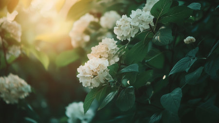 Blooming White Flowers Adorning a Lush Green Background Creating a Stunning Scene