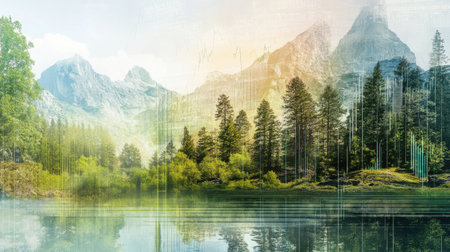 Abstract fragmented forest landscape merging colors and light