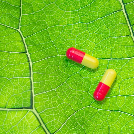 Alternative medicine herbal organic capsule drug with herbs leaf natural supplements for healthy good life.