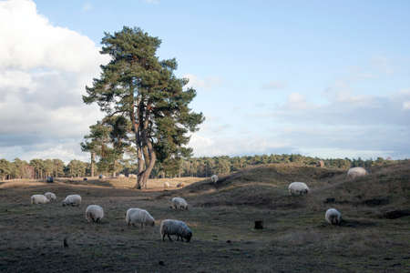 flock of sheep on the moor near Zeist and utrecht in the netherlands
