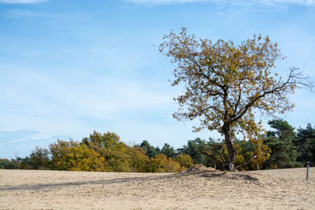 Autumn tree on the edge of the forest in national park De hoge Veluwe in the Netherlands