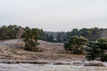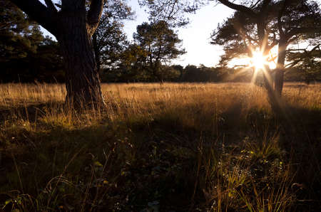 Early morning during sunrise at the Ermelosche Heide, The Netherlands.