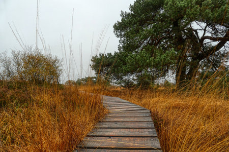 Wooden walkway through the Hohes Venn high moor in Belgium