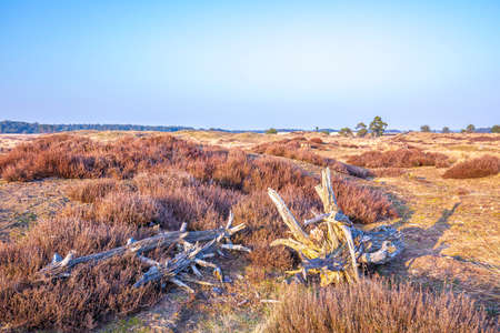 Natural heathland landscape near Hijken in Province of Drenthe on beautiful summer evening in the Netherlands