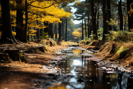 Autumn forest landscape, orange golden foliage, fall wallpaper, AI Generated illustration