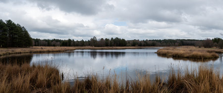 Beautiful natural forest and agricultural moor landscape panorama in the winter in Lower Saxony Germany.