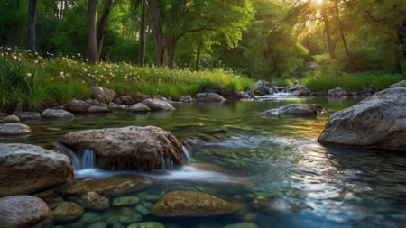 Freshwater Stream: Beautiful Spring Close-Up Generative AI