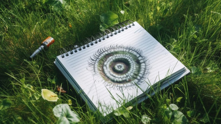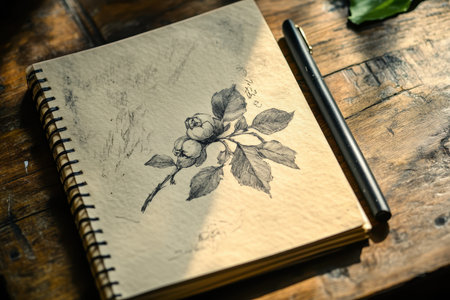 A detailed drawing of a leaf in a notebook with a pencil, perfect for educational or artistic use