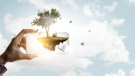 concept image of Digital composite using cell phone in forest