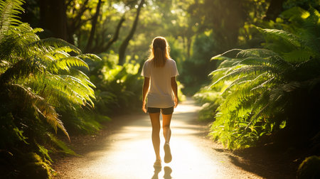 Walking through a sunlit path surrounded by lush greenery in a peaceful forest