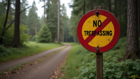 Serene Forest Warning No Trespassing Sign Amidst Trees