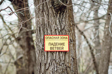 Saratov, Russia- April 19, 2021: Inscription Dangerous area in the park, Russia.