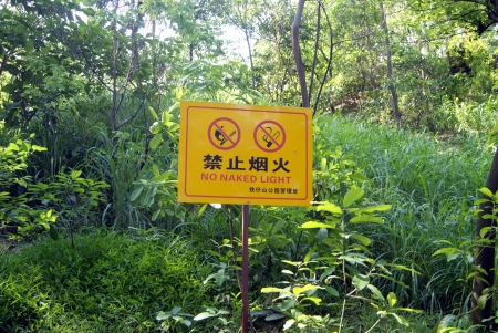 warning sign no fire in forest