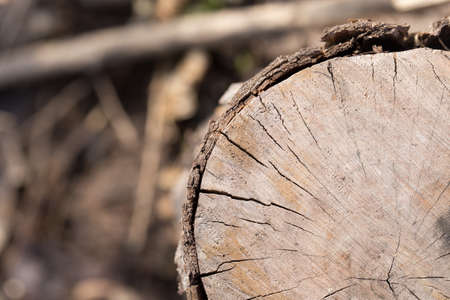 Tree stump for product display montages. Natural background. Texture background wallpaper. Natural wooden background.