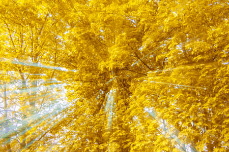 Sun shining between the autumn leaves, stunning background of the sunlight