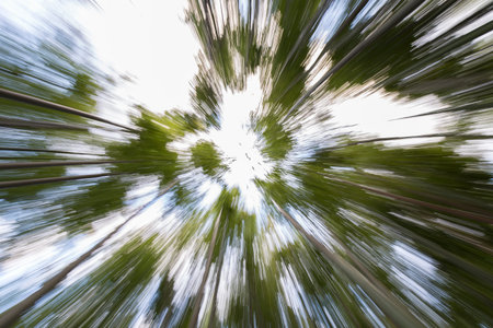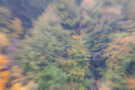 Abstract motion blur effect. High angle view of the trees in the forest.