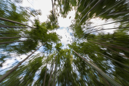 Blur effect of the eucalyptus many high into the sky in elevation clear dimly bright and sunny