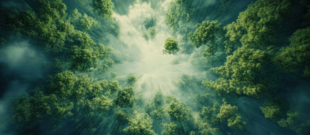 Looking Up at a Tall Tree with Lush, Green Leaves, Creating a Circular Frame of Nature s Beauty