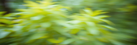 Blurred green foliage creating a vibrant and dynamic atmosphere in a forest setting during early morning light