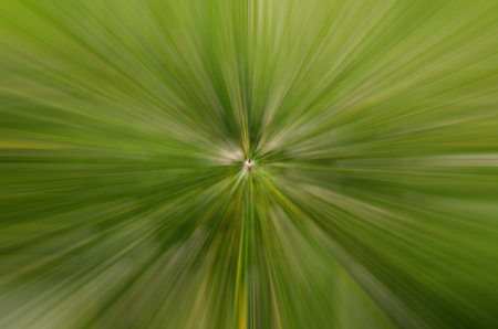 Abstract green background of tree in countryside outdoors. Zoom speed blured motion. Created by zooming out.