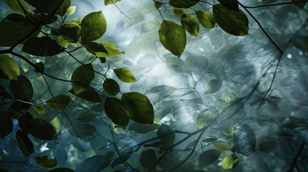 Vibrant green leaves illuminated by sunlight in a lush natural environment during a warm summer afternoon
