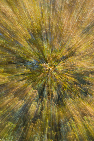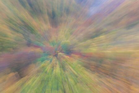 Abstract photo, forest in autumn photographed with different effects of motion and zoom. Colorful textured background. long shutter speed.