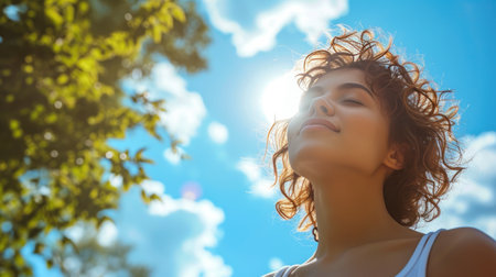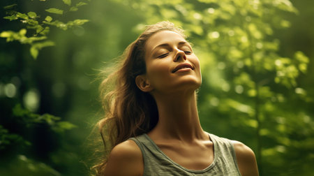 Generative AI, a woman breathing in the outdoors with wide arms