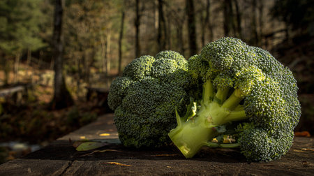 Forest Fresh Broccoli: Two Heads of Vibrant Green on Aged Wood