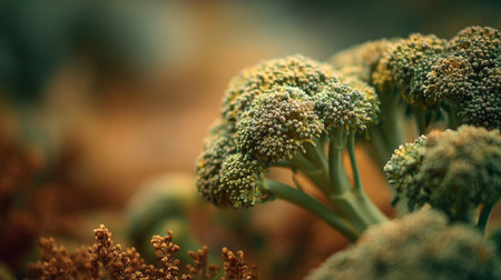 Macro close-up of fresh green broccoli, a nutritious and healthy organic vegetable, perfect for vegan and vegetarian diets