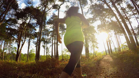 Man jogging in the forest at sunrise. Healthy lifestyle and fitness concept.