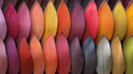 A stunning close-up of multicolored leaves showcasing vivid hues and intricate vein patterns. This image captures the beauty of natures palette, perfect for various themes.