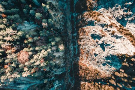 Vibrant autumn forest captured from above with stunning contrast and rich colors