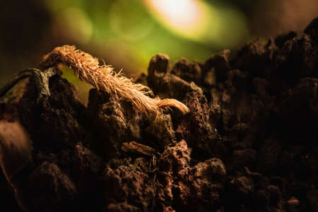 Close up of a group of worms in the soil, shallow depth of field