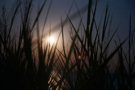 gold sunset grass sea on the beach