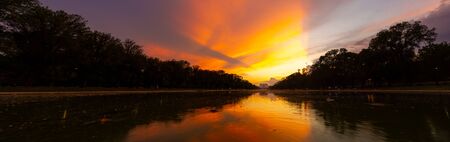 Evening Panorama of the Lincoln Memorial with the reflecting pool and dramatic clouds and light.