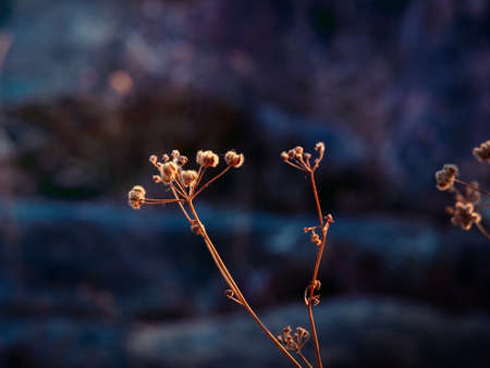 Close up photo of a dry plant in the meadow at evening on a natural background