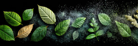 Close-up view of a leaf, with water droplets on its surface and visible veins. Generative AI