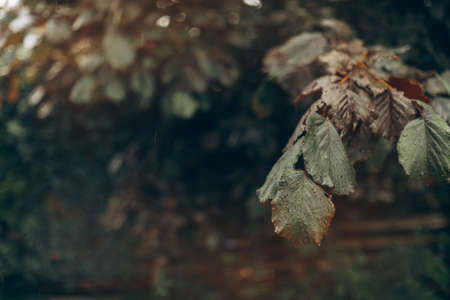Falling Leaves - Yellow leaves with rain drops.Yellow leaves