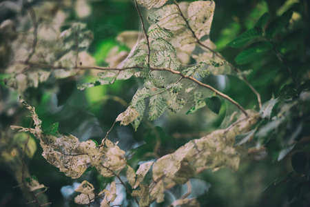 dry leaves seen from close up in the autumn - winter season in a forest in Spain