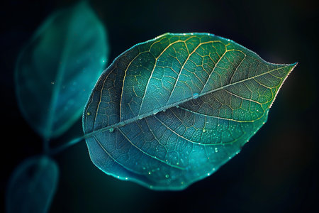 Vibrant leaf vein glows in macro magnification generated by artificial intelligence