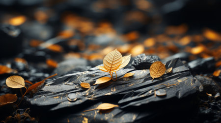 Fallen leaves on black stone with bokeh background. Autumn concept