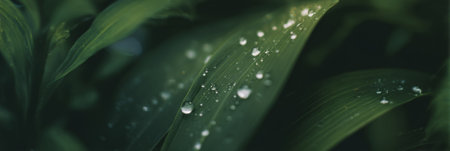 rain drop on green leaf macro close up abstract nature background dark tone