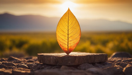 A captivating image of a single leaf illuminated by warm sunlight, surrounded by soft rays. This serene natural scene evokes tranquility and showcases the beauty of nature.