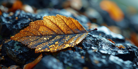 Detailed Fallen Leaf Displaying Autumn Color Changes and Intricate Vein Structure