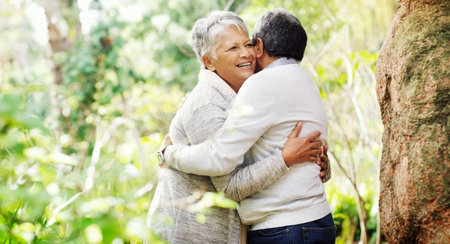 In each others arms is where we belong. an affectionate senior couple hugging at the park.