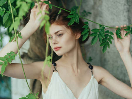 attractive woman Cosmetology nature green leaves glamor Lifestyle