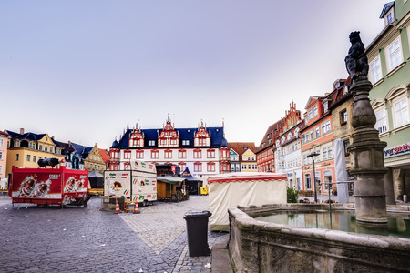 COBURG, GERMANY - JULY 11 2015: Historical Buildings in the franconian city of Coburg in northern Bavaria, Germany on a warm summer morning