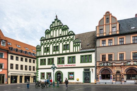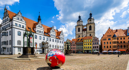 Wittenberg, Germany - May 5, 2023: Famous old town with historic buildings in Lutherstadt Wittenberg, Germany
