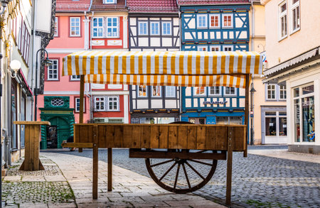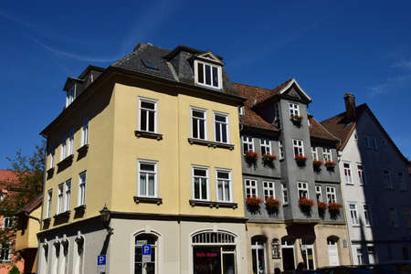 Erfurt, Germany - May 21, 2023: facades of buildings in city center, historical heritage.