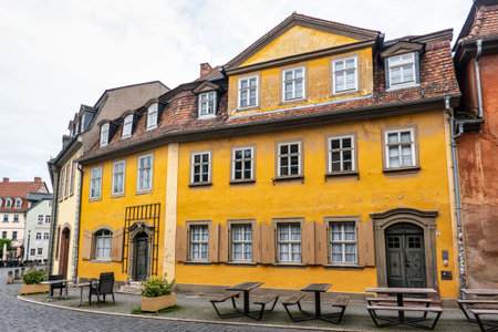 Weimar, Germany - May 10, 2023: House of Johann Wolfgang von Goethe in the city of Weimar in Germany. Now Goethe Museum, whose exposition is dedicated to the life and work of Johann Wolfgang Goethe.